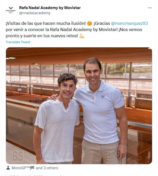 ¡Visitas de las que hacen mucha ilusión! ☺️ ¡Gracias @marcmarquez93 por venir a conocer la Rafa Nadal Academy by Movistar! ¡Nos vemos pronto y suerte en tus nuevos retos! 💪🏼 pic.twitter.com/OMnlYPWQE1