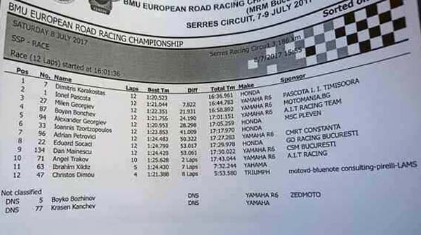 Ο Γιάννης Τζωρτζόπουλος που συμμετέχει για πολλοστή φόρα στο Βαλκανικό Πρωτάθλημα ταχύτητας στον πρώτο αγώνα του Σαββάτου τερμάτισε στην 6η θέση, με καλύτερο χρόνο 1.23.857, ενώ στον 2ο αγώνα της Κυριακής τερμάτισε στην 7η θέση μετά από μάχη με τον Adrian Petrovici και με καλύτερο χρόνο 1:23.399.