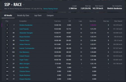 Ο Καρακώστας έκανε ταχύτερο γύρο 1:20:614, πολύ κοντά στο ρεκόρ του πλέον, πράγμα που δείχνει πως ο Καρακώστας θα είναι ένας από τους πρωταγωνιστές στον επόμενο αγώνα των Σερρών για το Πανελλήνιο Πρωτάθλημα Ταχύτητας!