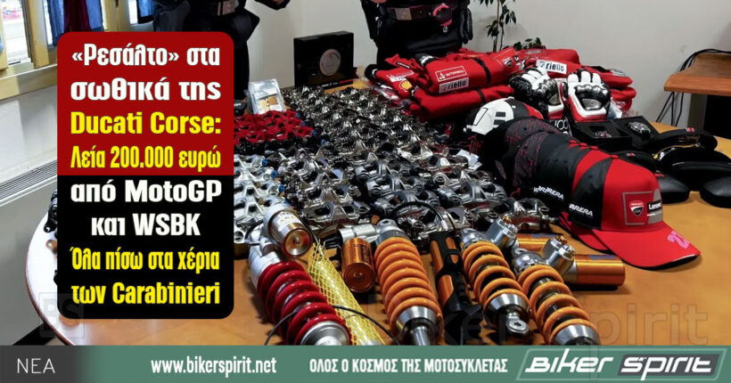 Σαν σενάριο αστυνομικού θρίλερ, αλλά με φόντο τον κόσμο των αγώνων, εξελίχθηκε η υπόθεση κλοπής εξαρτημάτων αγωνιστικών μοτοσυκλετών της Ducati Corse, με τους Ιταλούς Carabinieri να καταφέρνουν τελικά να ανακτήσουν πλήρως τη λεία.