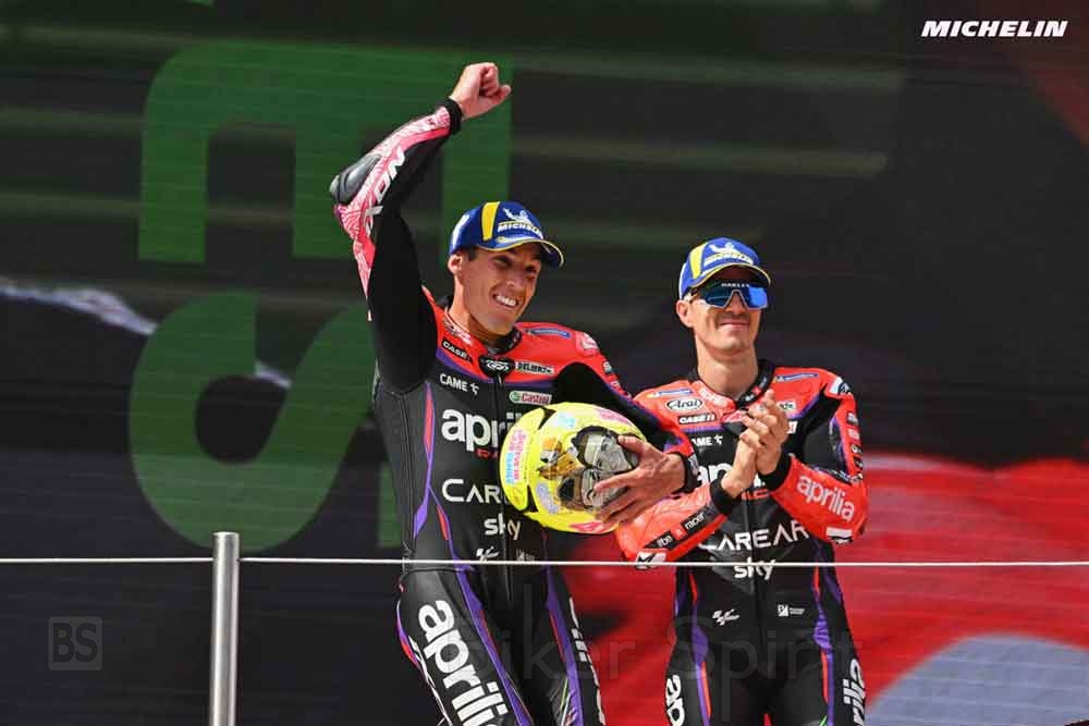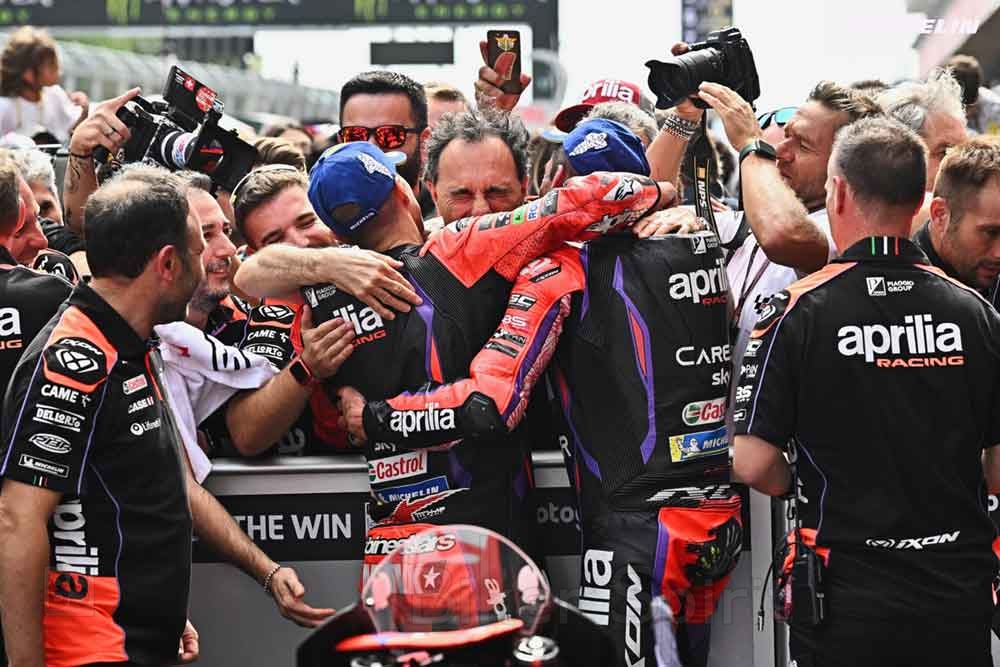 Ο Romano Albesiano, “πατέρας” του RS-GP που κέρδισε τον αγώνα Sprint με τον Aleix και την επόμενη κέρδισε και τον αγώνα με τον Vinales να κάνουν το 1-2 για την Aprilia, απλά πετά από την χαρά του.