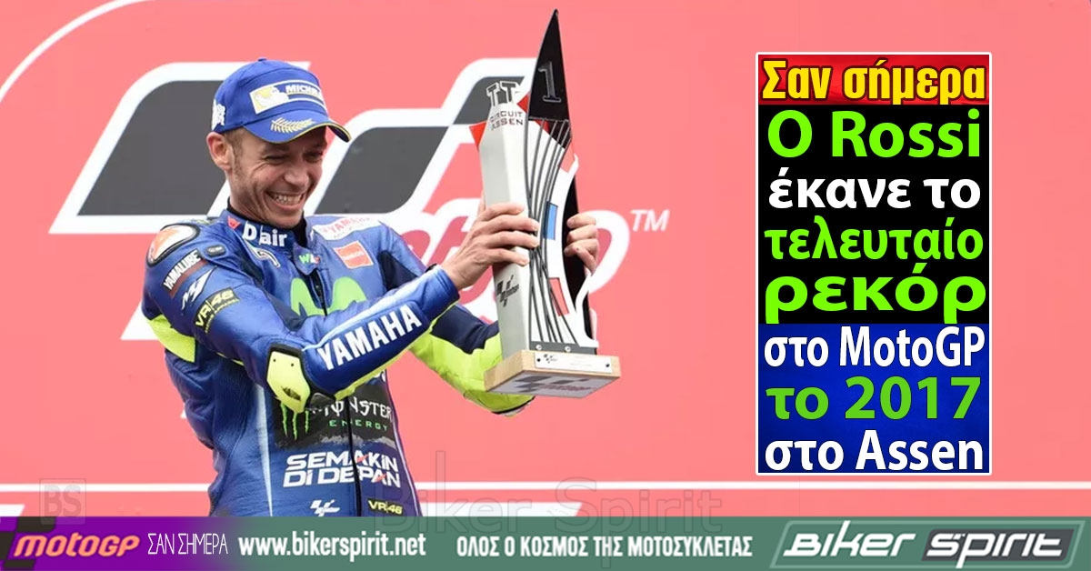 Σαν Σήμερα ο Valentino Rossi έκανε το τελευταίο του ρεκόρ στο MotoGP το 2017 στο Assen