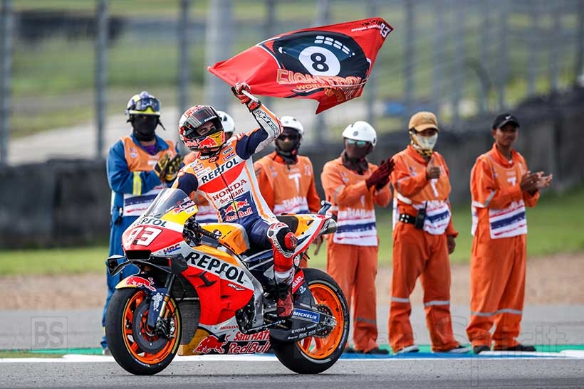 Ο Marquez έχει κερδίσει όλους τους τίτλους του MotoGP με μοτοσυκλέτες της Honda και πέρασε τον Mick Doohan ως τον οδηγό με τους κορυφαίους τίτλους κατηγορίας με τον Ιάπωνα κατασκευαστή (5).