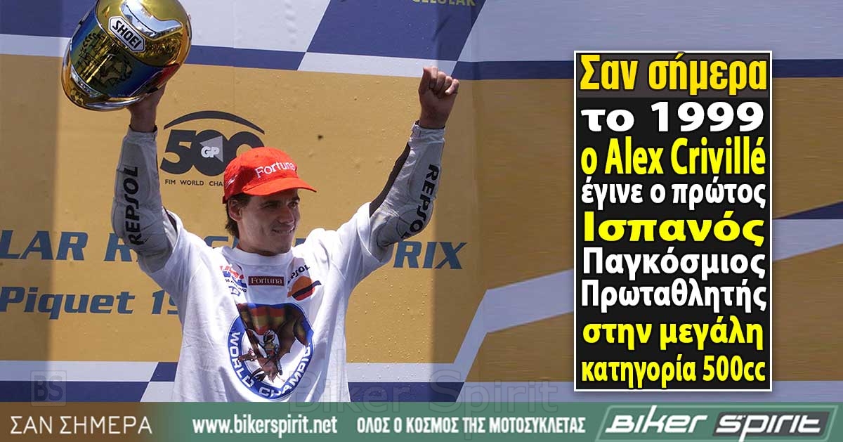 Σαν σήμερα στις 24 Οκτωβρίου 1999, ο Alex Crivillé ανακηρύχθηκε παγκόσμιος πρωταθλητής της μεγάλης κατηγορίας 500cc, και έγινε ο πρώτος Ισπανός που το κατάφερε.