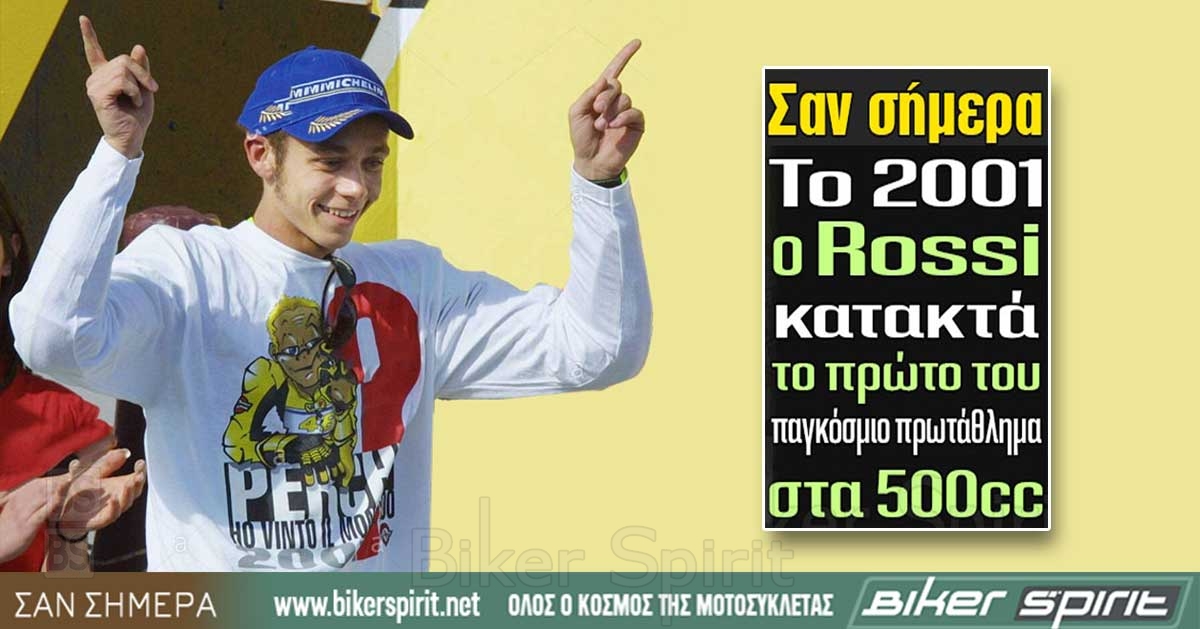 Σαν σήμερα το 2001, ο Valentino Rossi κερδίζει το πρώτο του Παγκόσμιο Πρωτάθλημα στην μεγάλη κατηγορία 500cc
