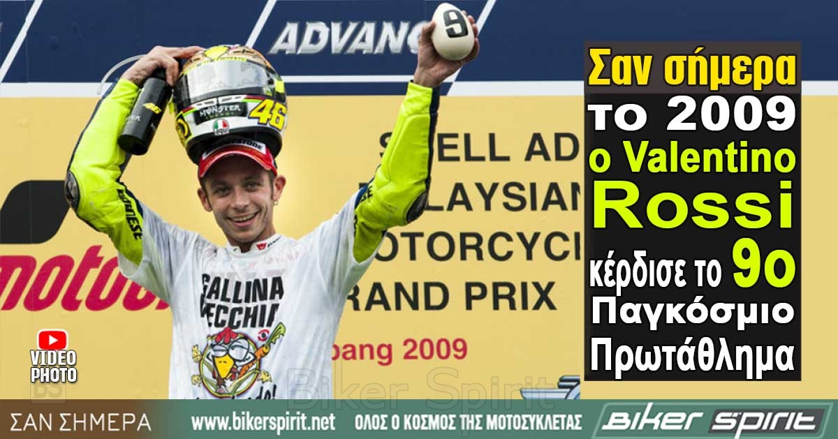 Σαν σήμερα στις 25 Οκτωβρίου 2009 ο Valentino Rossi κέρδισε το 9ο Παγκόσμιο Πρωτάθλημα στην Μαλαισία!