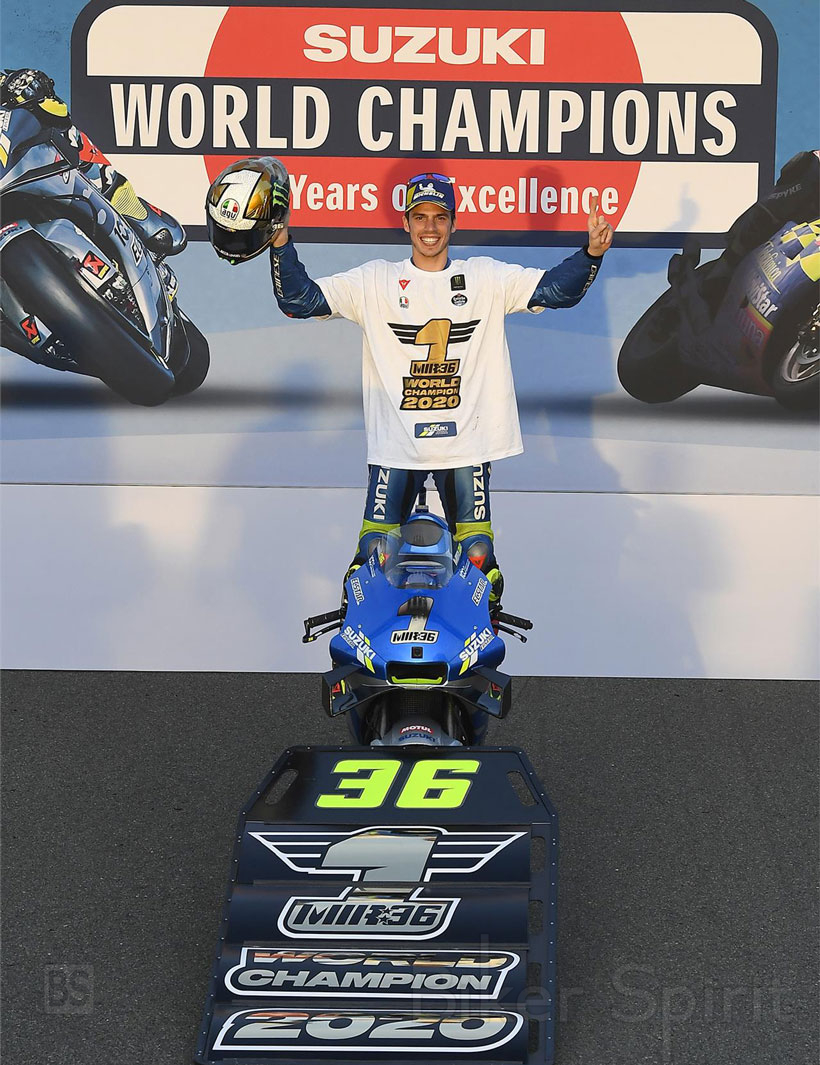 Την Κυριακή 15 Νοεμβρίου 2020, ο Joan Mir έγινε ο πρώτος πρωταθλητής με την Suzuki μετά τον Roberts Jr το 2000 και ο 5ος πρωταθλητής της Suzuki, μετα τους Sheene, Lucchinelli, Uncini, Schwantz και Roberts Jr.