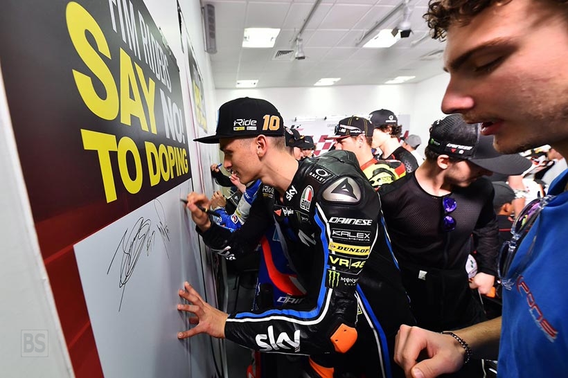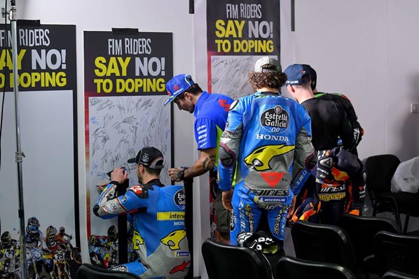 “ΗFIM και η Dorna δουλεύουν πολύ προσεκτικά από προηγούμενες σεζόν για το θέμα αυτό”, λέει ο Carmelo Ezpeleta, Διευθύνων Σύμβουλος της Dorna Sports. “Είναι κάτι πολύ σημαντικό για εμάς και ειδικά για την FIM ως αθλητικό διοργανωτή του Παγκοσμίου Πρωταθλήματος και της πειθαρχικής εξουσίας. Καθώς το άθλημα έχει αναπτυχθεί, η φυσική κατάσταση είναι μια πτυχή που είναι πλέον μία από τις σημαντικότερες για όλες τις κατηγορίες και θεωρούμε ότι είναι σημαντικό να δώσουμε στους αναβάτες μια καλή εκπαίδευση για την καταπολέμηση του ντόπινγκ τόσο στην πίστα όσο και εκτός”.