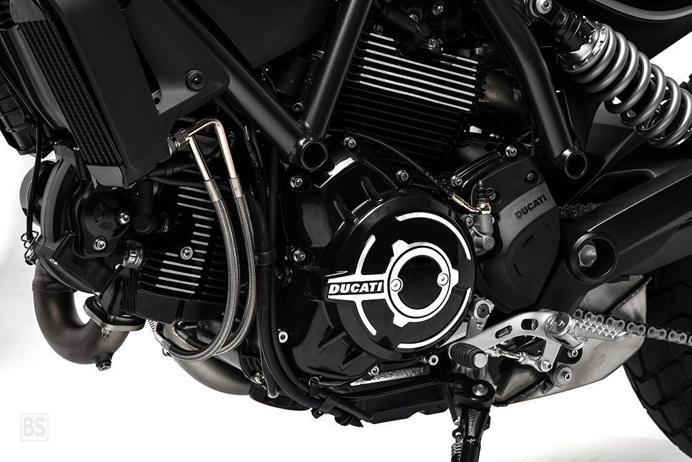 Το πρώτο αποτέλεσμα του Joyvolution είναι το νέο μοντέλο Scrambler. Τα νέα αλουμινένια πλαϊνά πάνελ ταιριάζουν άψογα με το μεταλλικό ντεπόζιτο σε σχήμα δάκρυ και με το σχήμα του προβολέα. Ο κινητήρας των 800 κυβικών σε μαύρο χρώμα, προσδίδουν στο Ducati Scrambler εντυπωσιακό στυλ.