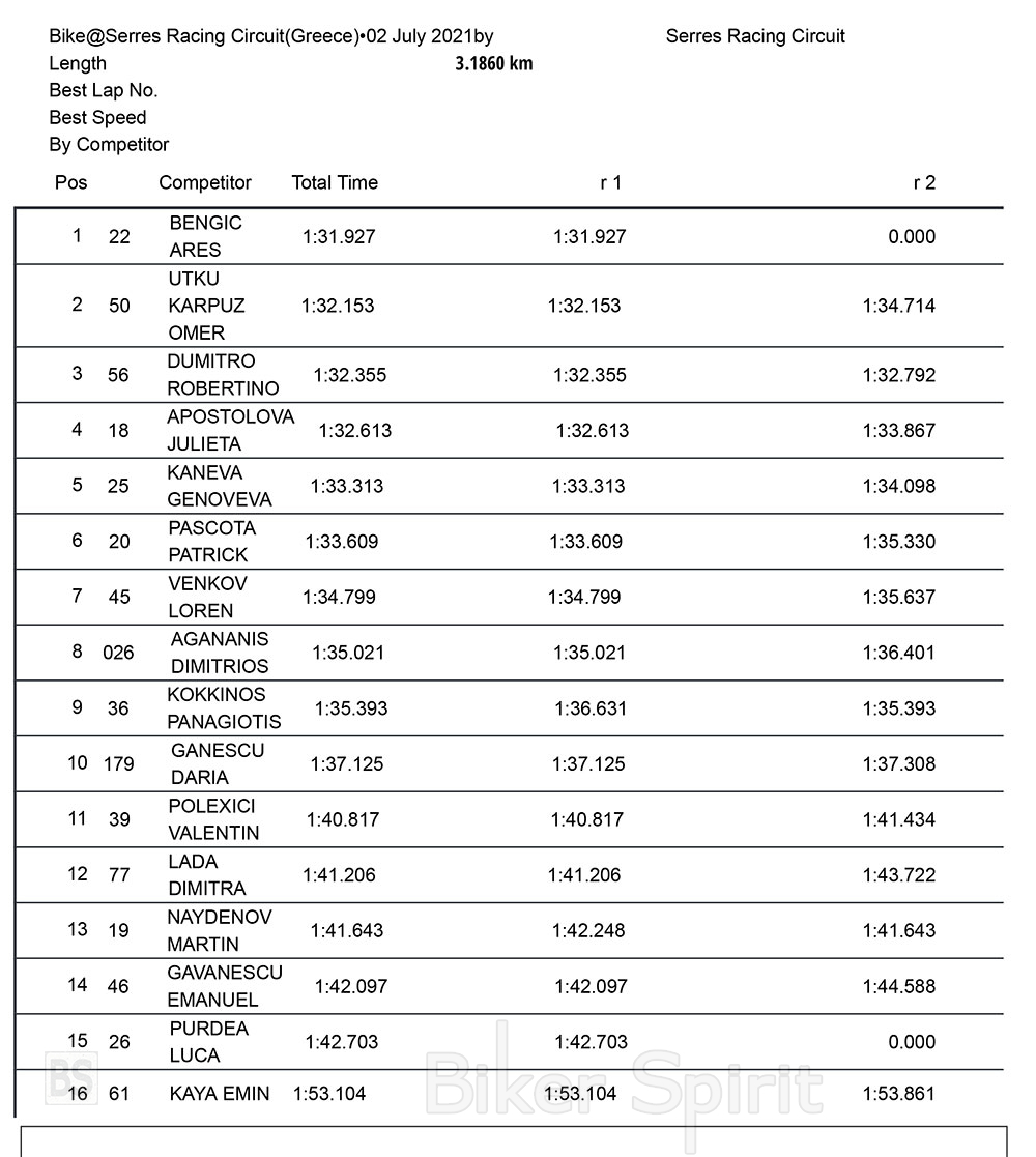 Δεύτερός Ελληνας οδηγός είναι ο Παναγιώτης Κόκκινος με χρόνο 1.35.393, εν, τον τρίτο χρόνο από τους φέλλινες οδηγούς έκανε η Δήμητρα Λαδά με χρόνο 1.41.206.