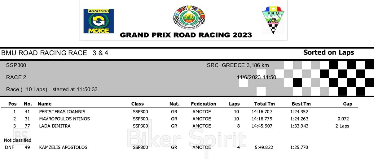 Για την κατηγορία SS300 του ΠΠΤ 2023 στις Σέρρες νικητής του 2ου αγώνα ήταν ο Γιάννης Περιστεράς, ήταν επίσης και νικητής του 4ου Βαλκανικού αγώνα BMU.