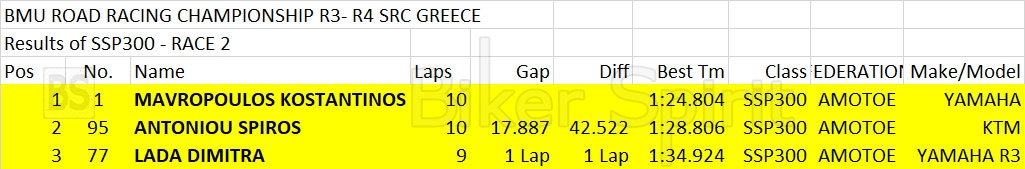 ΑΠΟΤΕΛΕΣΜΑΤΑ ΑΓΩΝΑ SS300 BMU