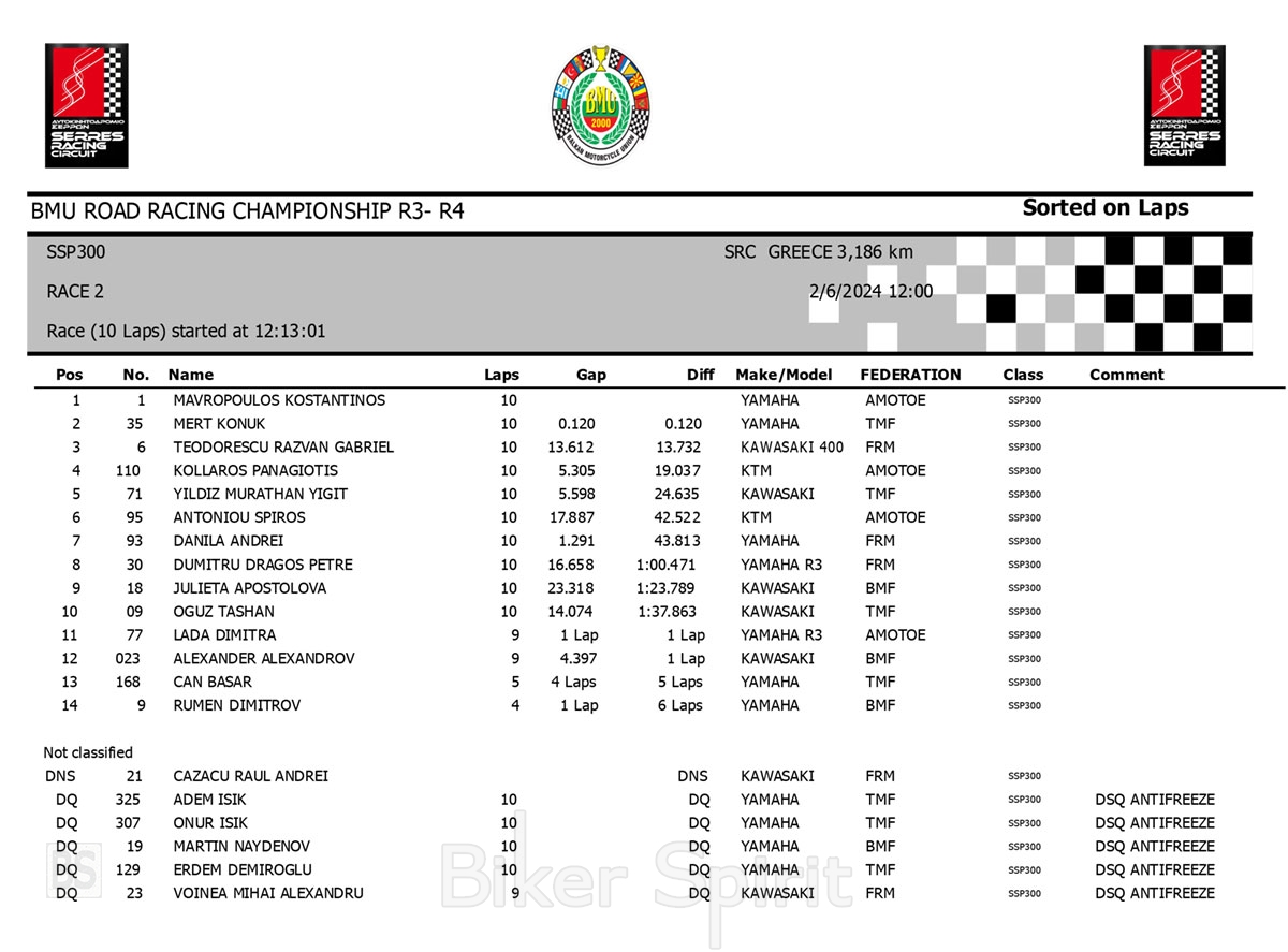 Ο Μαυρόπουλος φορώντας ελαστικά Pirelli Superbike slick, ξεκίνησε από την δεύτερη θέση και τερμάτισε 1ος , μετα από μάχη τον Mert Konuk, παίρνοντας την νίκη και για το Βαλκανικό!