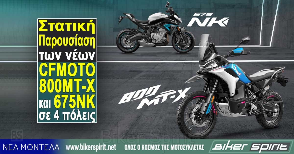 Στατική παρουσίαση των πολυαναμενόμενων νέων μοντέλων της CFMOTO, 800MT-X και 675ΝΚ σε Αθήνα, Θεσσαλονίκη, Πάτρα και Ηράκλειο