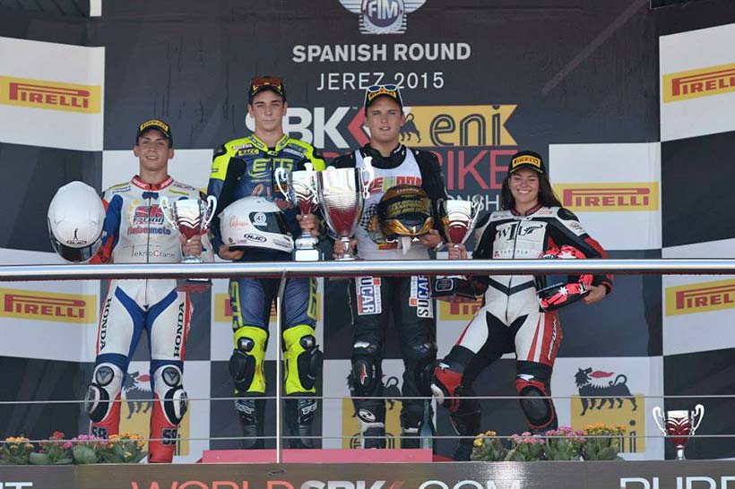 Τον αγώνα κέρδισε ο Ισπανός Xavi Pinsach, ο οποίος έκανε το ντεμπούτο του στο European Junior Cup 2015, ενώ τον τίτλο του European Junior Cup 2015 κέρδισε ο συμπατριώτης του Javier Orellana όπου τερμάτισε στην 3η θέση. Στο σημερινό προτελευταίο γύρο στην πίστα της Jerez, 2ος τερμάτισε ο Ιταλός Emanuele Puscueddu.