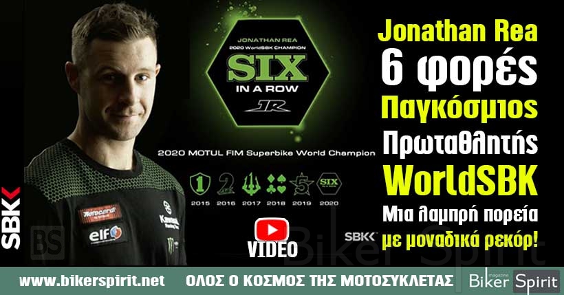 Ο Jonathan Rea (Kawasaki Racing Team WorldSBK) έφτασε στους έξι τίτλους σε έξι χρόνια καθώς εξασφάλισε τον τίτλο του Παγκόσμιου Πρωταθλήματος FIM Superbike 2020 και προσχώρησε σε ένα μικρό “κλαμπ” αθλητών που έχουν κερδίσει έξι τίτλους στην αντίστοιχη κατηγορία τους ο καθένας τους και έναν ακόμη μικρότερο “κλαμπ” όσων έχουν κερδίσει έξι συνεχόμενους τίτλους.