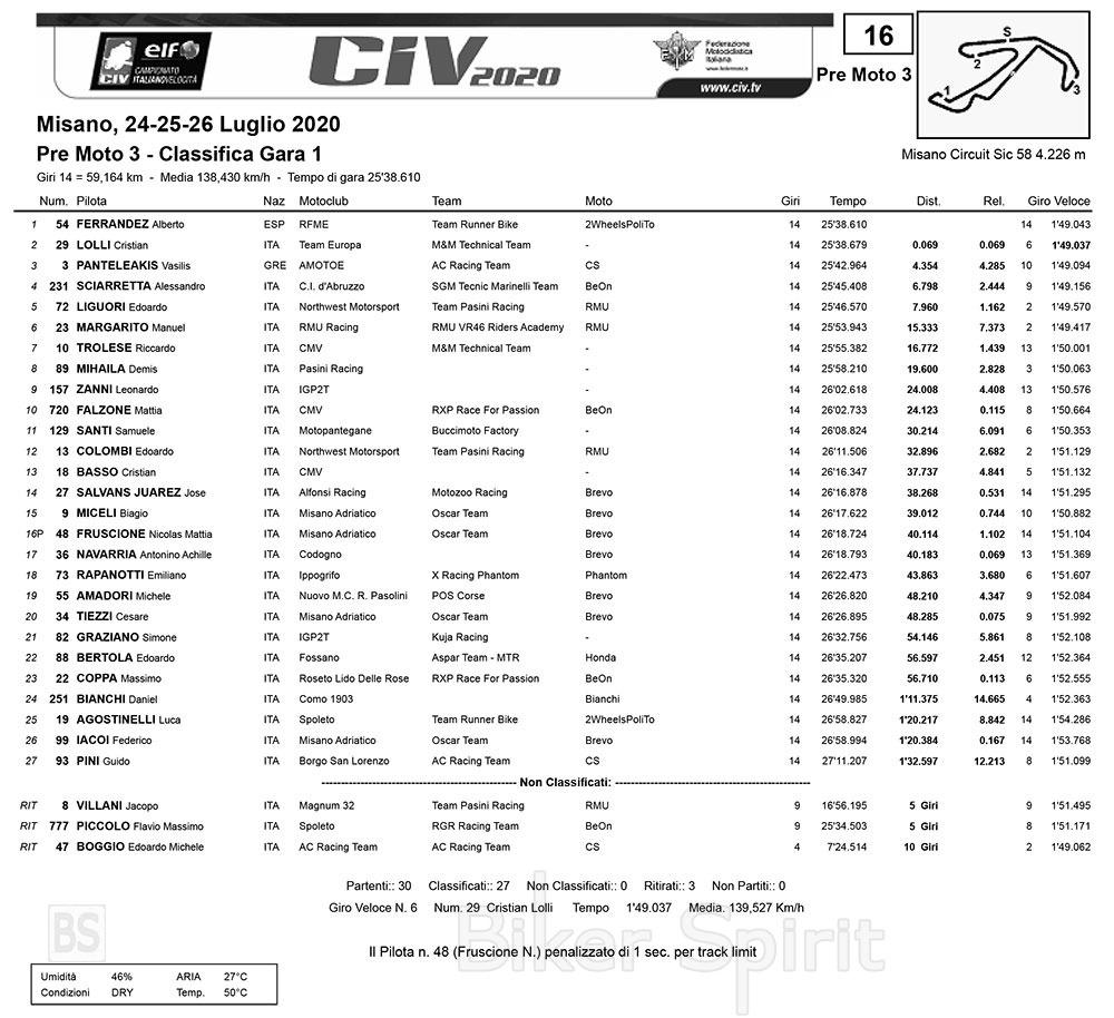 3ος τερμάτισε στο Misano ο Βασίλης Παντελεάκης στον πρώτο αγώνα του διήμερου του Ιταλικού Πρωταθλήματος Ταχύτητας CIV