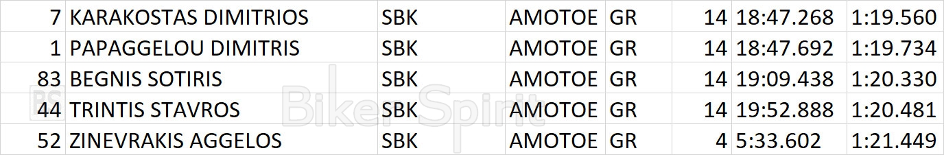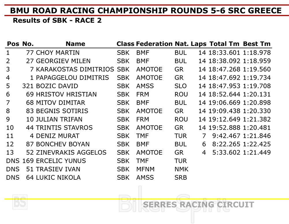 Το Ελληνικό Βάθρο συμπλήρωσε ο Σωτήρης Μπεγνής (YAMAHA R1), αυτή την φορά, ενώ στο Βαλκανικό τερμάτισε στην 8η θέση.
