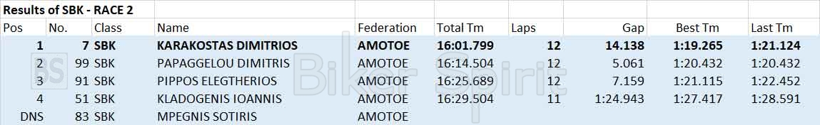 Να θυμίσουμε πως αυτή είναι η 6η συνεχομένη νίκη του Δημήτρη Καρακώστα στην μεγάλη κατηγορία, SBK, ξεκινώντας από πέρυσι όπου κέρδισε και τους 4 αγώνες της σεζόν 2022 κατακτώντας το πρωτάθλημα και συνεχίζοντας στην φετινή σεζόν στον πρώτο διπλό αγώνα, με δυο νίκες!