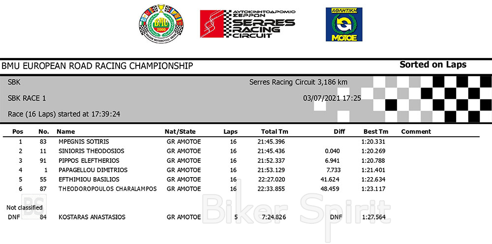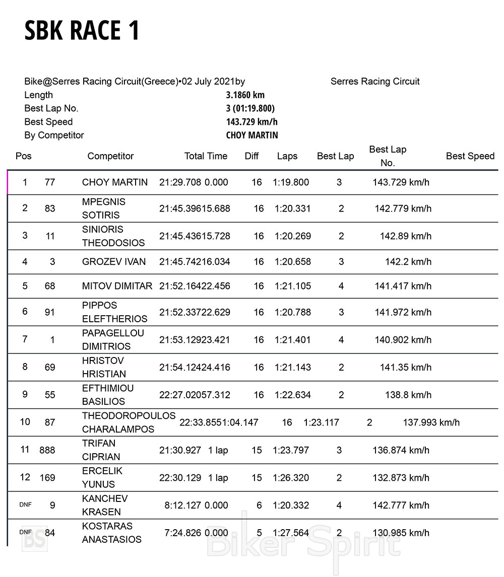 Για την κατηγορία SUPERBIKE που γίνεται μαζί με το βαλκανικό, ο Σωτήρης Μπεγνής (Yamaha R1) ήταν ο νικητής του 1ου αγώνα του ΠΠΤ 2021 στις Σέρρες, και δεύτερος στο Βαλκανικό, παίρνοντας μια νίκη στον τελευταίο γυρο!