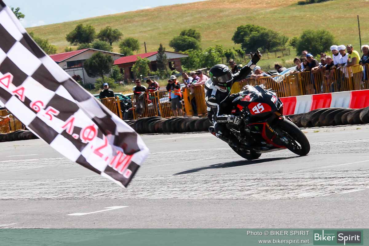 Τα φώτα έσβησαν και οι οδηγοί ξεκίνησαν έναν αγώνα 24 γύρων με τον συνήθως ύποπτο εκκινήσεων της κατηγορίας Μιχάλη Κουτσουμπό, όπου έκανε μια ακόμα εκπληκτική εκκίνηση και έστριψε πρώτος στην Κ1 με άψογο τρόπο μπροστά από τον Σωτήρη Μπεγνή και τον Συνιώρη.