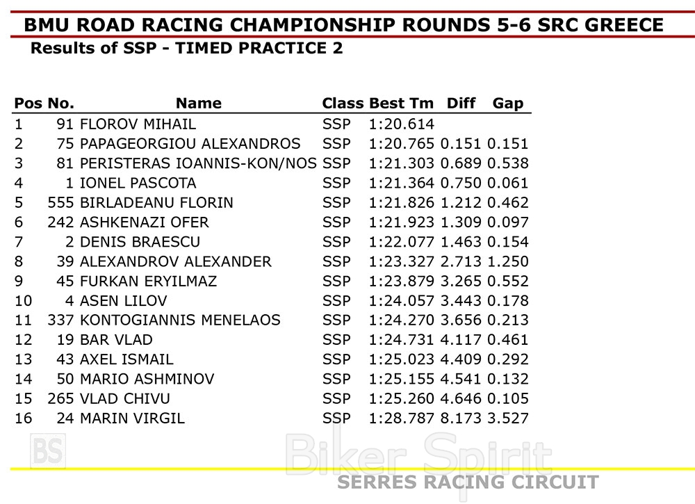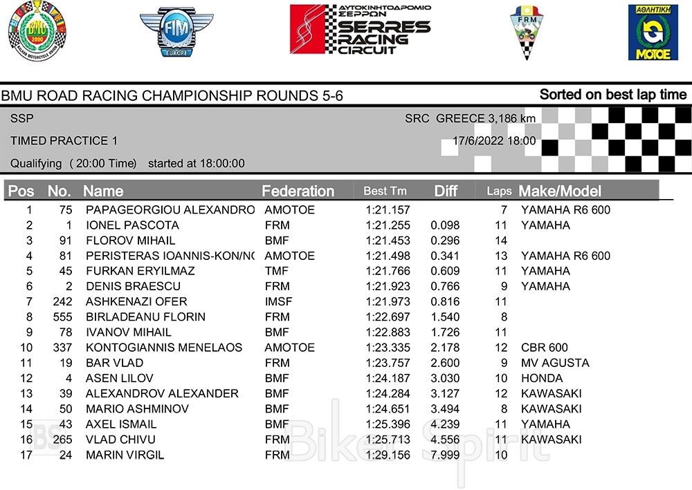 Για την κατηγορία SUPERSPORT που γίνεται μαζί με το βαλκανικό, ταχύτερος στα χρονομετρημένα δοκιμαστικά που καθορίσαν την σειρά εκκίνησης του 1ου και 2ου αγώνα του ΠΠΤ 2022 στις Σέρρες, ήταν Αλεξ Παπαγεωργίου με χρόνο 1.20.765 και θα ξεκινήσει από την πρώτη σειρά.