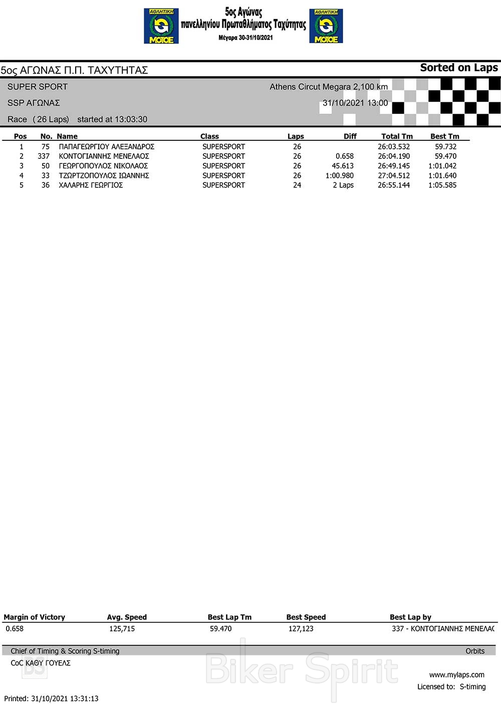 Ξεκινώντας από την pole position στην κατηγορία Supersport, ο Αλέξ Παπαγεωργίου (YAMAHA R6 600), κέρδισε τον 5ο και τελευταίο αγώνα της σεζόν 2021.