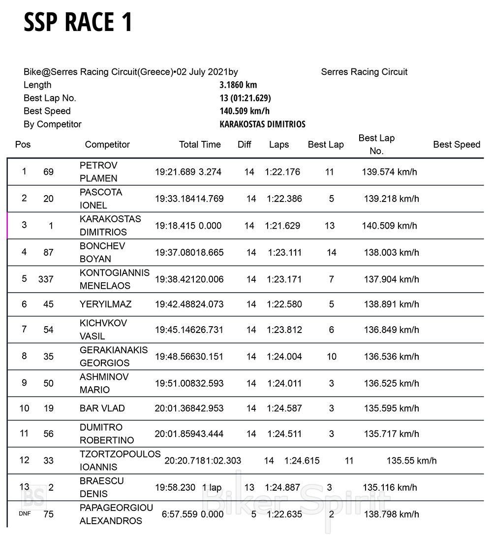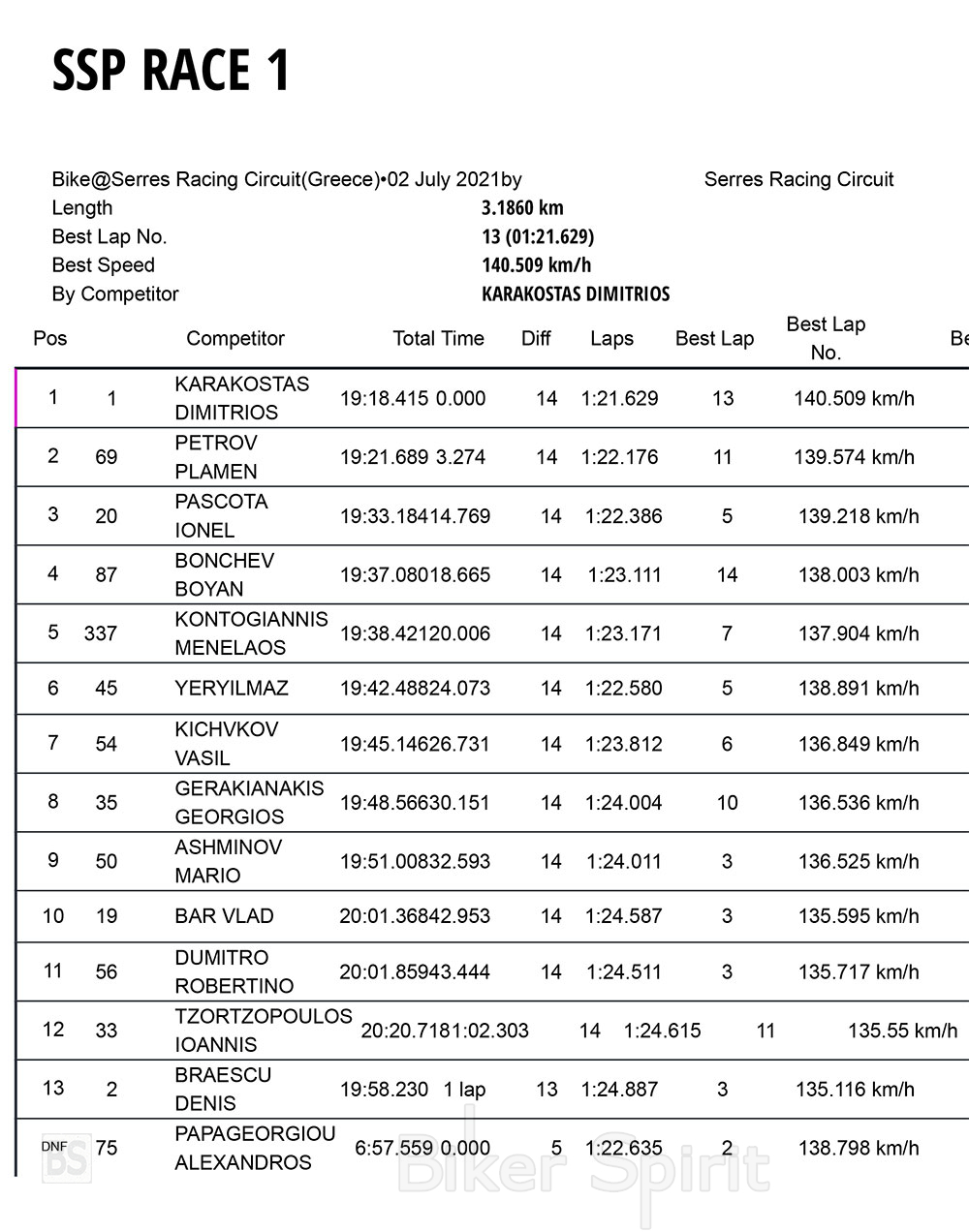 Το βάθρο του ΠΠΤ έκλεισε ο Γιώργος Γερακιανάκης (YAMAHA R6) στην 3η θέση μεταξύ των Ελλήνων και στην 8η της γενικής, μπροστά από τον Γιάννη Τζωρτζόπουλο (HONDA CBR 600) που τερμάτισε 4ος στους Έλληνες και 10ος στην γενική!