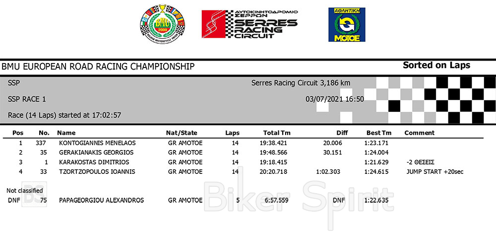 Στην δεύτερη θέση του ΠΠΤ τερμάτισε ο Μενέλαος Κοντογιάννης (HONDA CBR 600) που ήταν 5ος στην συνολικά κατάταξη!