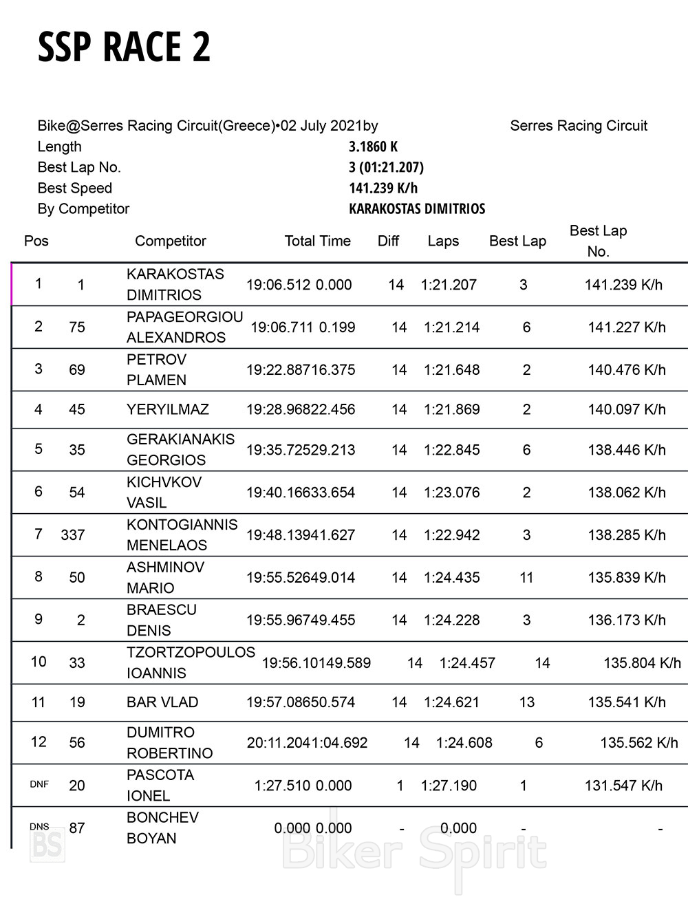 Ο Δημήτρης Καρακώστας έδωσε μάχη σε όλο τον αγώνα και με τον Αλεξ Παπαγεωργίου (YAMAHA R6) που κατάφερε και πέρασε για ένα γυρο μπροστά, αλλά δεν κατάφερε να κρατήσει την θέση του και τελικά τερμάτισε στην 2η θέση και το ΠΠΤ και στο Βαλκανικό!