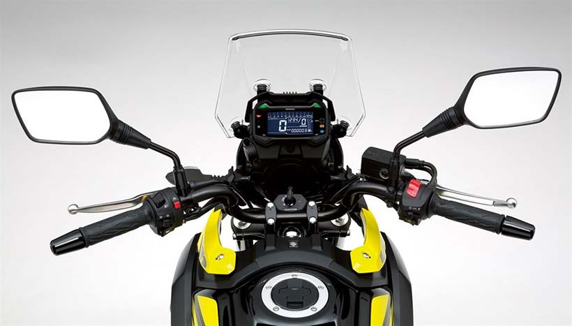 Το V-Strom 250 έχει ένα πλήρες ψηφιακό ταμπλό στο οποίο απεικονίζονται οι ενδείξεις του ταχυμέτρου, του στροφόμετρου, η επιλεγμένη σχέση στο κιβώτιο, η μέση κατανάλωση, η στάθμη του καυσίμου, και δείκτη θερμοκρασίας κινητήρα.
