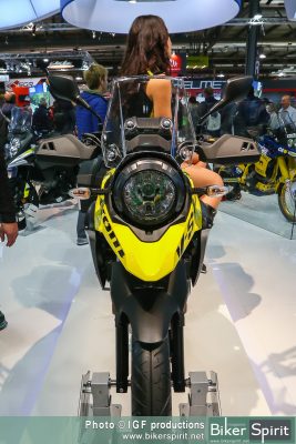 Φαίνεται αρκετά καλό και ελαφρύ, μια μικρή μοτοσικλέτα στυλ περιπέτειας. Οι τροχοί των 17” δεν προσδίδουν χωμάτινα χαρακτηριστικά, αλλά οι μεγάλες διαδρομές της ανάρτησης και η όρθια θέση οδήγησης το προσανατολίζουν προς τα εκεί .