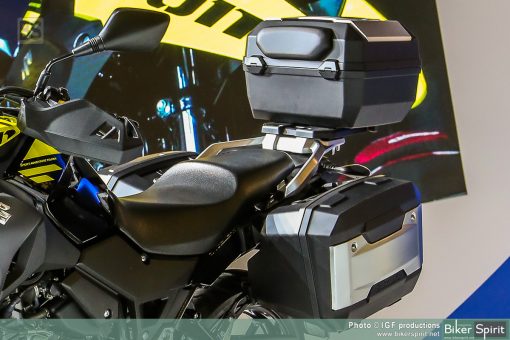 Η συνολική σχεδίαση όσο και οι χώροι παραπέμπουν σε σαφώς μεγαλύτερη μοτοσικλέτα. Υπάρχει η δυνατότητα τοποθέτησης πλήρους σετ βαλιτσών της Suzuki, και υπόσχεται τουριστικές επιδόσεις.