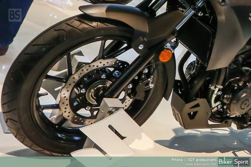Διαθέτει επίσης έξτρα- χούφτες τιμονιού, ζελατίνα και φέρινγκ που προστατεύουν τον αναβάτη από τον αέρα, και προστατευτική ποδιά κινητήρα. Το ρεζερβουάρ των 17 λίτρων υπόσχεται αυτονομία περίπου 400 χιλιομέτρων! Τα φρένα είναι από δισκόφρενα μαργαρίτα, ένα σε κάθε τροχό, με δικάναλο ABS στο στάνταρ εξοπλισμό.