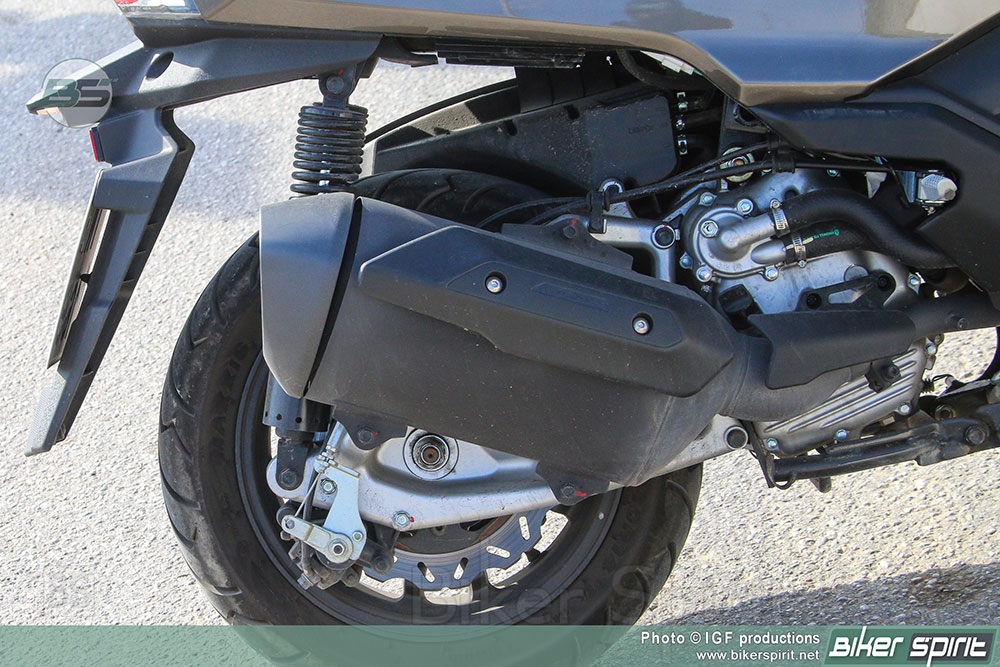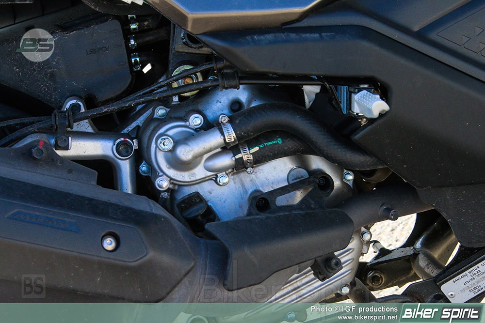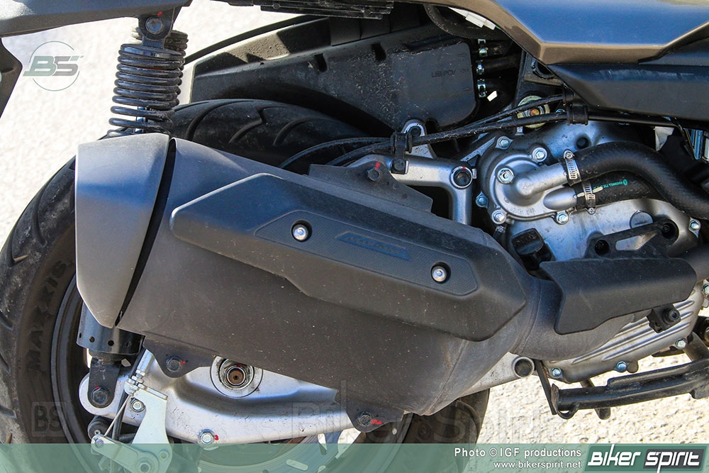 Κατά την εκκίνηση εκτελείται ένας διαγνωστικός έλεγχος, όπως δείχνουν οι βελόνες των οργάνων, κάτι που υπογραμμίζει την ποιότητα του συγκεκριμένου σκούτερ. Παρέχονται πολλές ενδείξεις για τον οδηγό. Παρά τον κυβισμό του ο μονοκύλινδρος κινητήρας δεν παράγει κάποιο ιδιαίτερο κραδασμό στην λειτουργία του.