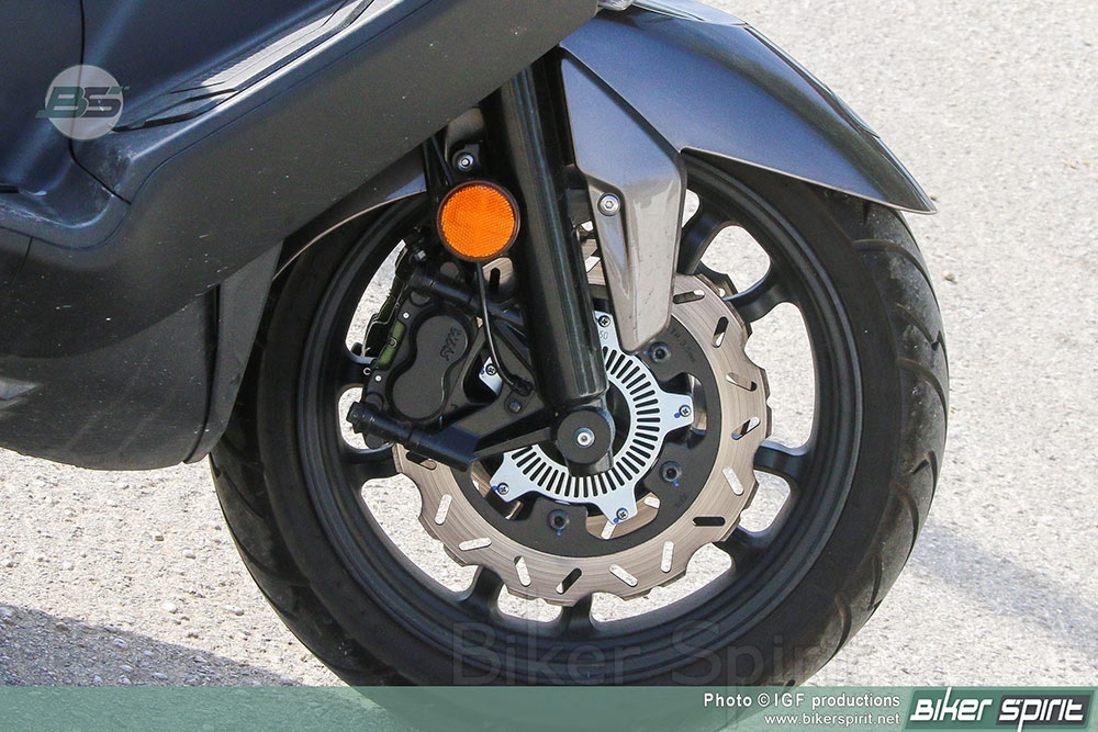 Οι μεγάλοι τροχοί με όμορφες ζάντες ελαφρού κράματος και ελαστικά 120/70R15 εμπρός και 160/60R14 πίσω, παρέχουν εξαιρετικό κράτημα, άνεση και σιγουριά ξεπερνώντας αποτελεσματικά τις ανωμαλίες του οδοστρώματος, ένα συχνό φαινόμενο των πόλεων μας.