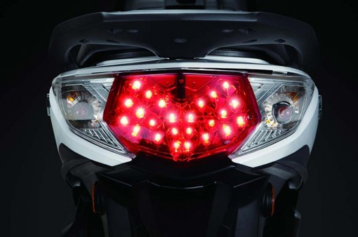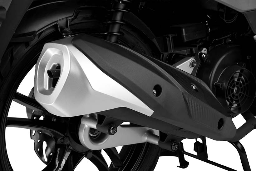 • Πλαϊνά προστατευτικά με φινίρισμα carbon, περιορίζουν τη ζημιά στα φωτιστικά σώματα και τα πλαστικά μέρη του scooter