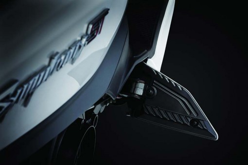 • Τα αναδιπλούμενα μαρσπιέ συνεπιβάτη προσφέρουν ευρεία βάση στήριξης, ενώ κλειστά ενσωματώνονται τέλεια στις σχεδιαστικές γραμμές του μοντέλου
