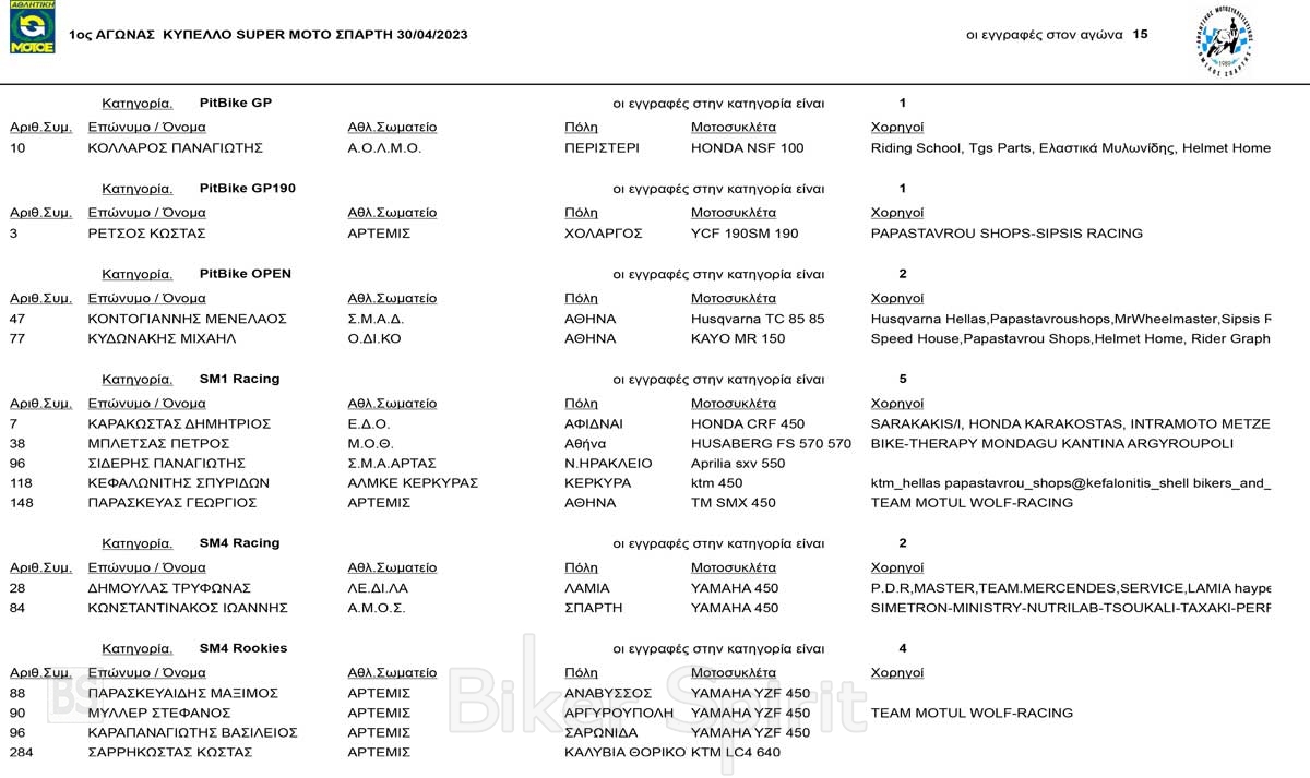 ΣΥΜΜΕΤΟΧΕΣ: 1ος Αγώνας Κυπέλλου SUPERMOTO 2023 στην Σπάρτη στις 30 Απριλίου