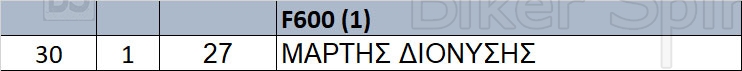 Σε αυτή την κατηγορία Βλέπουμε 1 συμμετοχή : ΜΑΡΤΗΣ ΔΙΟΝΥΣΗΣ