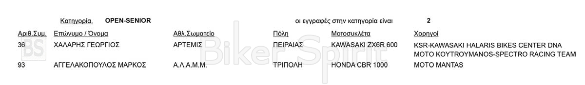Στις συμμέτοχες βλέπουμε τον δυο φορές πρωταθλητή της κατηγορίας, Δημήτρη Καρακώστα, με HONDA CBR 1000.