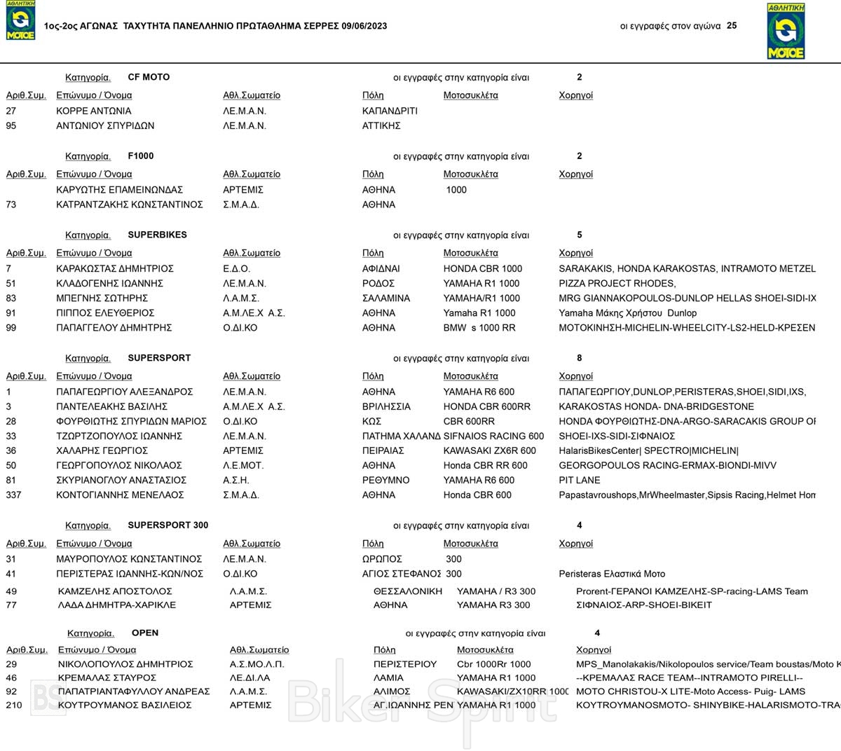Στις συμμέτοχες βλέπουμε τον πρωταθλητή του 2022, Δημήτρη Καρακώστα, τίτλο που πήρε στην πρώτη του χρονιά σαν rookie στην μεγάλη κατηγορία, με HONDA CBR 1000.