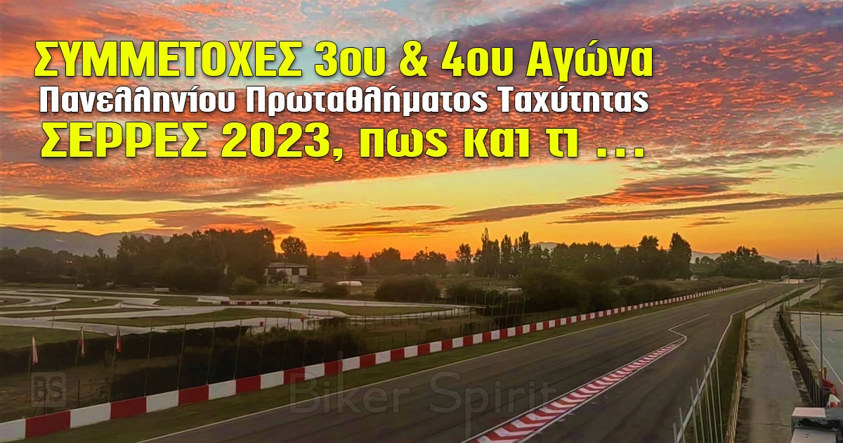 Η Αγωνιστική χρονιά του 2023 στην ταχύτητα συνεχίζεται με τον διπλό αγώνα στις Σέρρες, με τον 3ο και 4ο αγώνα της χρονιάς που διοργανώνεται μαζί με τον διπλό αγώνα του Βαλκανικού πρωταθλήματος ταχύτητας (BMU European Road Racing Championship 2023) στην πίστα των Σερρών, στην μοναδική κατ ουσία πίστα στην Ελλάδα, την μεγαλύτερη και ασφαλέστερη που έχουμε.