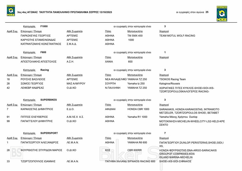 Στις συμμέτοχες βλέπουμε τον πρωταθλητή του 2022, Δημήτρη Καρακώστα, τίτλο που πήρε στην πρώτη του χρονιά σαν rookie στην μεγάλη κατηγορία, με HONDA CBR 1000.