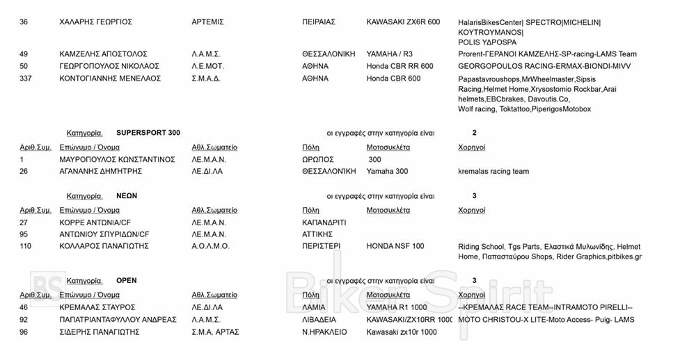 *Η παρακάτω λίστα είναι οι συμμετοχές που έχουν δοθεί στην ΑΜΟΤΟΕ μέχρι την Τετάρτη το βράδυ στις 12.00 και φαίνονται στο σύστημα της ΑΜΟΤΕ. Αν υπάρχουν διπλές συμμετοχές, δηλαδή συμμετοχή του ιδίου οδηγού σε 2 κατηγορίες, το σύστημα δεν τους δείχνει. Επίσης κάποιοι οδηγοί μπορεί να δηλώσουν την συμμετοχή τους εκπρόθεσμα, μέχρι την Πέμπτη το βράδυ στις 12 όπου και είναι η τελευταία προθεσμία για συμμετοχή.