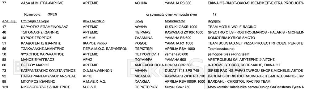 *Η παρακάτω λίστα είναι οι συμμετοχές που έχουν δοθεί στην ΑΜΟΤΟΕ μέχρι την Παρασκευή το βράδυ στις 12.00 και φαίνονται στο σύστημα της ΑΜΟΤΕ. Αν υπάρχουν διπλές συμμετοχές, δηλαδή συμμετοχή του ιδίου οδηγού σε 2 κατηγορίες, το σύστημα δεν τους δείχνει.