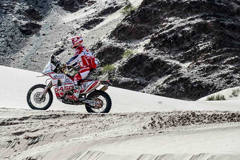 Με μόνο δύο ημέρες ακόμα για να ολοκληρωθεί το Dakar 2018, ο Giovanni Sala και η Ομάδα Rally GasGas μπορούν να είναι υπερήφανοι για τον ρόλο της GasGas στην επιστροφή της στον πιο απαιτητικό off-road αγώνα. Με τον Johnny Aubert στην 7η θέση της γενικής κατάταξης, τον νεαρό Jonathan Barragan που είναι 16ος στο ντεμπούτο του, και με τον Cristian España, που είναι 33ος στην γενική, η απόδοσης της ομάδας είναι πολύ θετική.