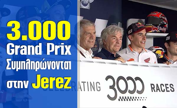 Γιορτάζοντας τα 3.000 Grand Prix ξεκινησε αυτό το τριήμερο με την καθιερωμένη συνέντευξη Τύπου στην Jerez, με τον πρωτοπόρο του πρωταθλήματος Valentino Rossi (Movistar Yamaha MotoGP) τον ομόσταυλό του Maverick Viñales, τους οδηγούς της Repsol Honda, Marc Marquez και Dani Pedrosa, τον Cal Crutchlow της LCR Honda και τον Jorge Lorenzo (Ducati), καθώς και οι δύο αναβάτες που έχουν κερδίσει τους περισσότερους από τους 3.000 αγώνες στην ιστορία από το 1949.