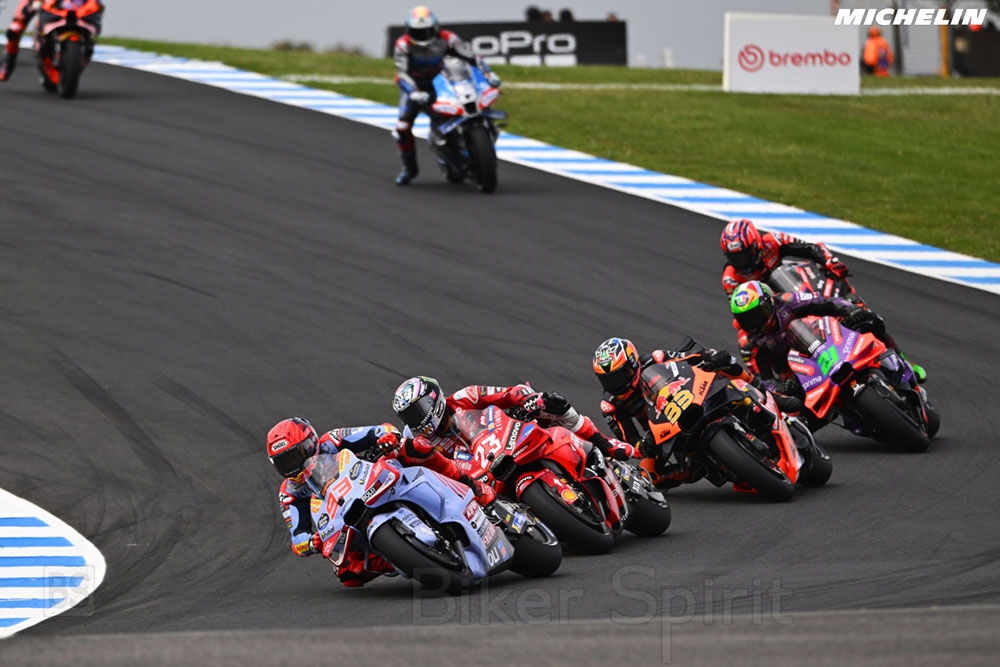 «Δεν θα κρύψω το γεγονός ότι ανησυχούσαμε στην αρχή του Σαββατοκύριακου για την άγνωστη αυτή νέα άσφαλτο στην πίστα στο Phillip Island», δήλωσε ο Piero Taramasso. «Καθώς δεν είχαμε την ευκαιρία να κάνουμε δοκιμές πιο πριν, φέραμε μια διευρυμένη γκάμα ελαστικών, η οποία για αυτην την πίστα ήταν ασύμμετρη τόσο μπροστά όσο και πίσω.Για τον μπροστινό τροχό, τα ελαστικά MICHELIN Power Slicks ήταν διαθέσιμα σε μαλακό, μεσαίο και σκληρό μείγμα γόμας με πιο σκληρή την αριστερή πλευρά . Επομένως, προσαρμόσαμε μόνο τα μείγματα γόμας στην πίστα. Στον πίσω τροχό, οι αναβάτες μπορούσαν να βασίζονται σε ένα μαλακό ελαστικό που ισοδυναμούσε με το μεσαίο του 2023, καθώς και σε δύο πιο σκληρά μείγματα γόμας με ενισχυμένο σκελετό. Δεδομένου ότι η πίστα του Phillip Island ανεβάζει πολλή την θερμοκρασία των ελαστικών, περιμέναμε με ανυπομονησία τις δοκιμές να αξιολογήσουμε την ικανότητα του πίσω μαλακού ελαστικού για να δούμε αν αντέχει τις καταπονήσεις της πίστας σε όλη τη διάρκεια του Grand Prix. Ωστόσο, λόγω των καιρικών συνθηκών, αυτή η επιβεβαίωση ήρθε μόνο μετά τον αγώνα Tissot Sprint. Στον αγώνα, το μαλακό πίσω ελαστικό, σε συνδυασμό με το σκληρό μπροστινό, επέτρεψαν στους Marc Marquez και Jorge Martin να προσφέρουν στο κοινό ένα συναρπαστικό αγώνα, καθώς και να σπάσουν όλα τα ρεκόρ. Ο ρυθμός και η συνέπεια σ ολους τους γύρους ήταν αξιοσημείωτες και στη γραμμή τερματισμού, ο βαθμός φθοράς ανταποκρίθηκε απόλυτα στις προσδοκίες μας».