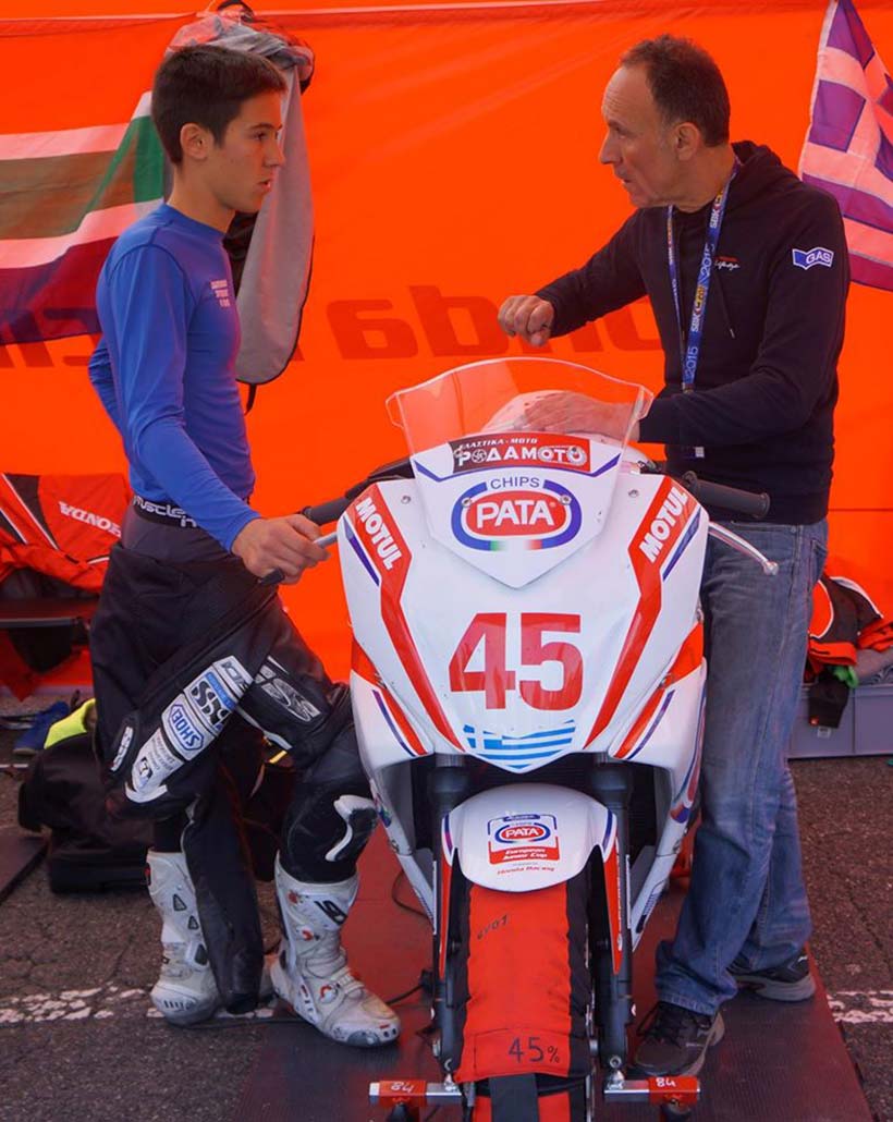 Τα δύο αδέρφια μίλησαν με το Γιώργο για το σετάρισμα της μοτοσυκλέτας και μετά συζήτησαν μεταξύ τους για τη διαδρομή της πίστας και τις ταχύτητες της μοτοσυκλέτας.